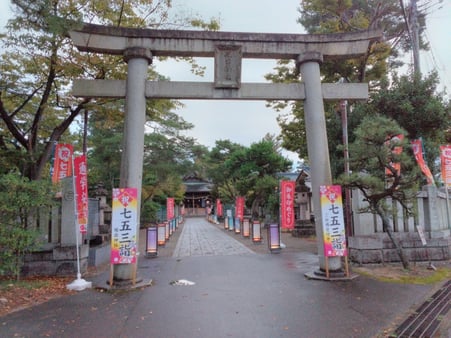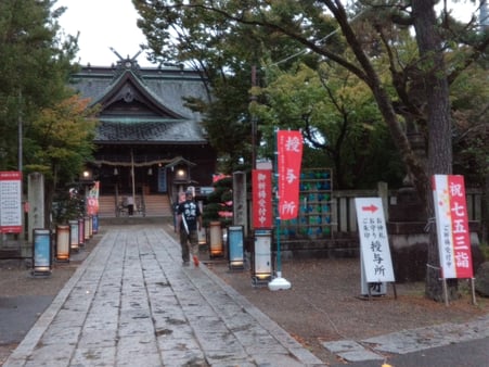 今は、「七五三詣」や「御朱印めぐり」の旗や行燈を並べて中に明かりが