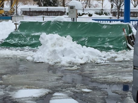 秋葉区東町は風も強く、路面凍結するので消雪パイプの水を出しています。