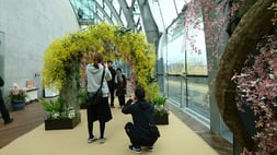 出口には花のアーチ。