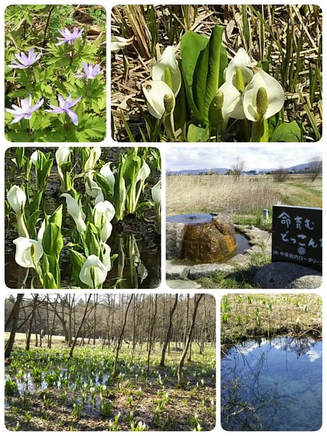 この辺りは、どっこん水と呼ばれる湧水が豊富な為、水芭蕉が群生できるのだとか・・・。