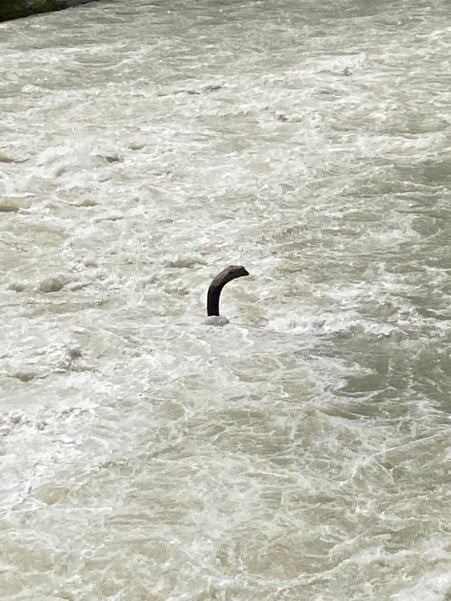 よく見て見ると流木? 8月の上旬に増水した時に流れて来た流木のようです。