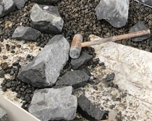 割石の大きいものをパネル面に合わせ、内側から小さい割石で固定するように積んでいきます。