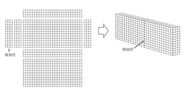 パネルの膨らみを抑えるために、向かい合うパネルを固定する「引っ張り」を作成。こちらも3マスを目安に必要本数を作成