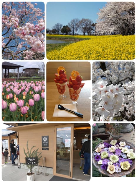 青空の下、桜と菜の花のコントラストが美しく・・・。