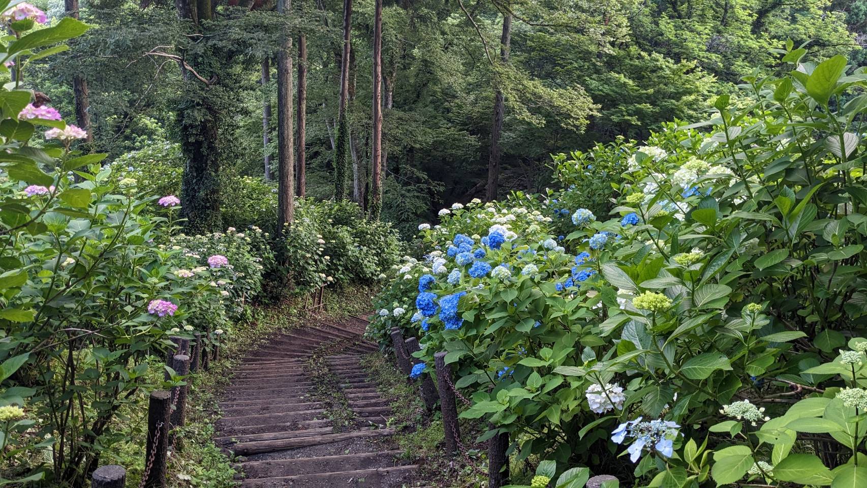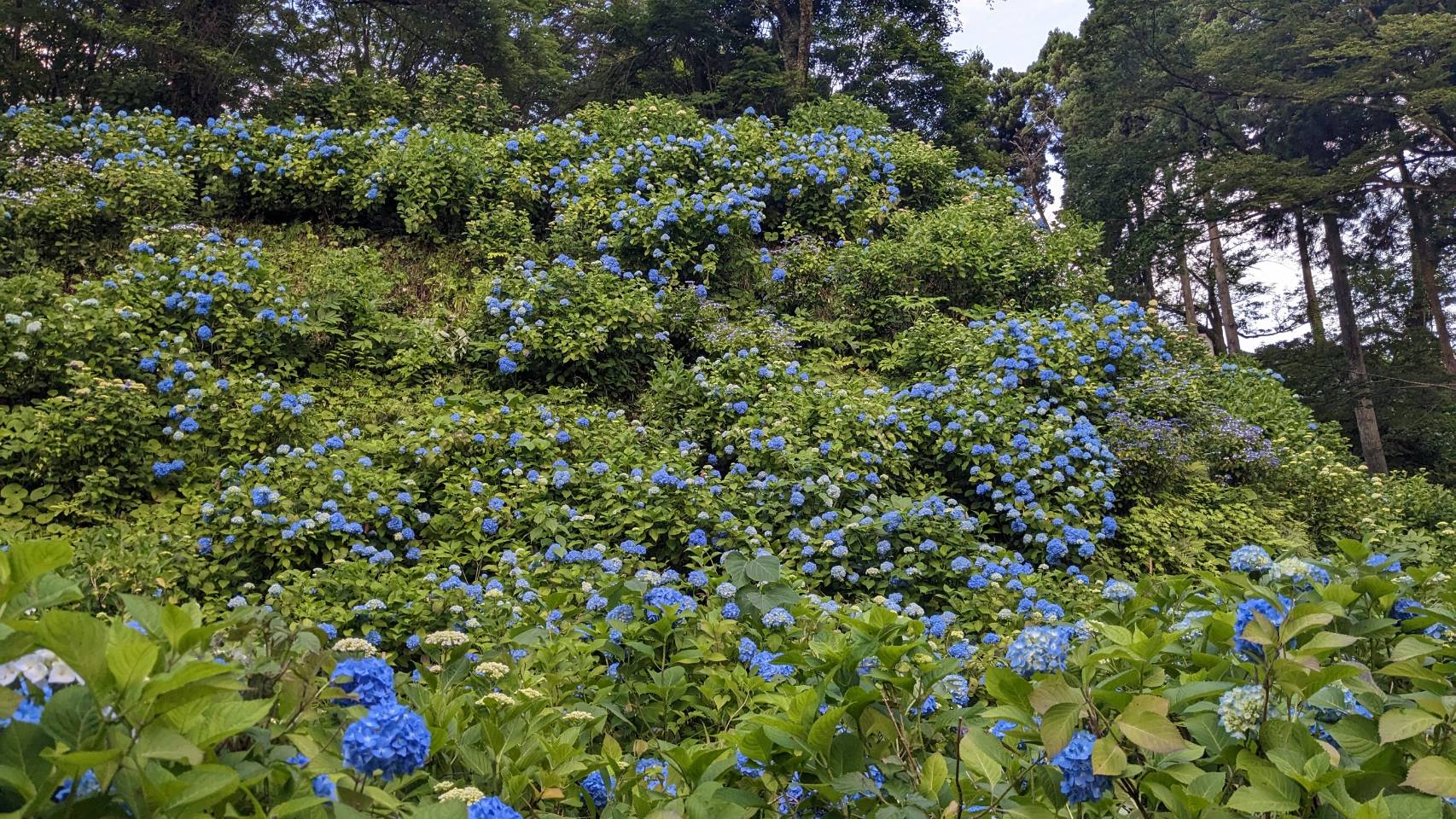 梅雨に入り、護摩堂山のアジサイ開花が気になり、