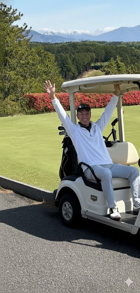 とても簡単だ。さっそくゴルフに行った時の自分の写真をアップロードして試したところ、左の元画像をもとに、右の画像をそれぞれ数10秒で生成してくれた。単純な画像編集ソフトでは成しえない画像編集をAIの力使っていとも容易く処理してくれることを実感した次第。