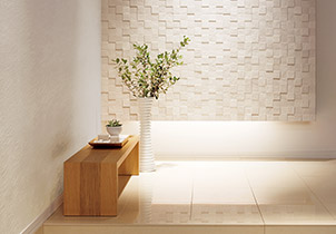 住まいにこだわる人がふえています。大切な家族と過ごす空間を何より大切にする人がふえています。そんな人にこそ、もっと内壁について考えて欲しい。そう願う私たちはいま、エコカラットを進化させました。上質で洗練されたデザイン。それは眺めているだけであなたの心をみたしてくれる。さらには日々の暮らしを幸せにする昨日も充実しています。