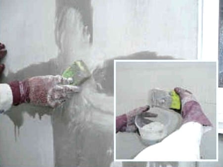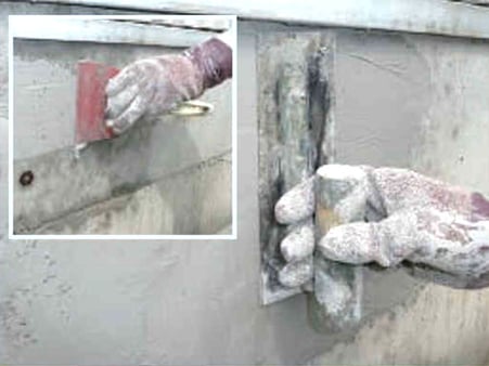 水練りしたドクターQリペアーをゴムベラ・金ゴテ・