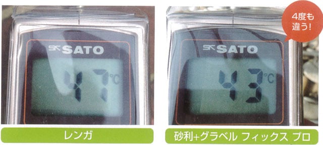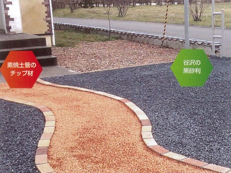 コンクリートやアスファルトに比べ、砂利やチップ材は太陽の光を乱反射するため、地表湿度の上昇を抑え、ヒートアイランド現象の防止にも効果を発揮します。