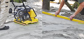 砂をしっかりと転圧して下地作りを行います。転圧後、整地面の不陸を除去して下さい。