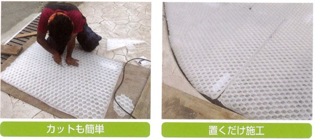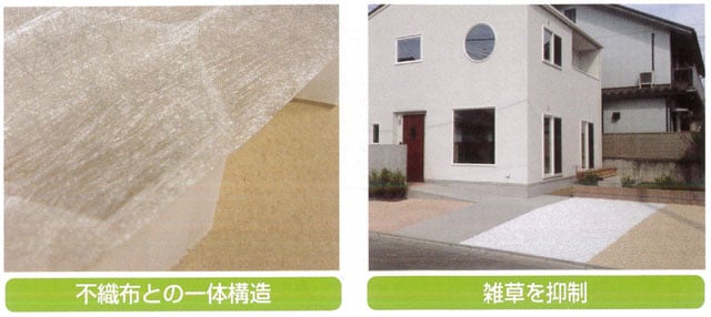 グラベルフィックスプロ」の裏面には不織布がついているため、地中から生える雑草を抑制することができます。