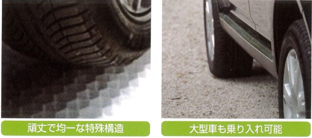 「グラベルフィックスプロ」の特殊なハニカム構造は砂利を充填しない状態でも約100t/m2まで耐えられ大型車でも乗入れ可能な「優れた強度」を誇ります。