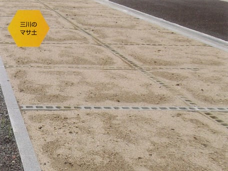 不織布との一体構造により、土と産地材が混ざるのを防ぎます。