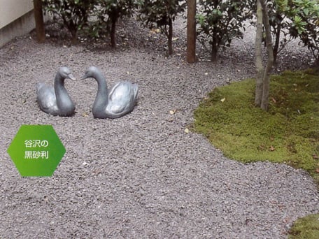 グラベルフィックスプロに各地の産材を敷き詰めた地面は安定性が高く、くぼみができたり埋もれることがありません。