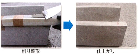 Mタイプで約5~10分、Lタイプで約20~40分後にコテ・ヘラ等で端からコンクリートに向けて削り、形を整える。その後定木を用いて最終的な仕上げを行う。