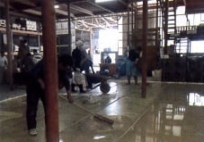 ポリッシャーや研削機で取り除きます。