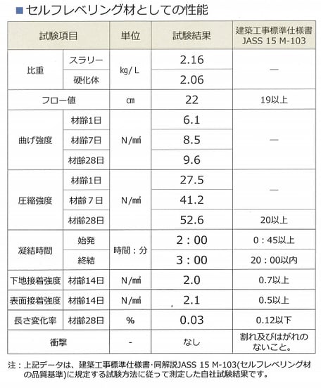 高強度(圧縮強度52N/㎟)で耐摩耗性に優れるため、耐荷重床の下地調整ができます。