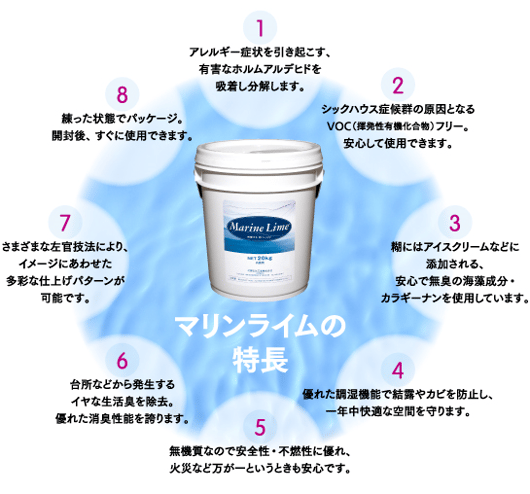 しっくいの機能を受け継ぎ、室内環境の改善・使い易さを追求したのが「マリンライム」です。