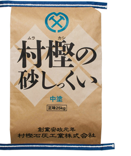 《MKプラスター》が十分に硬化乾燥後、《村榴のしっくい》を下付け、上付けで塗り付け、水 引き具合を見て仕上げてください(塗厚約1.5mm)。