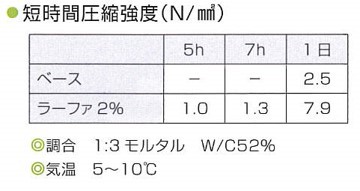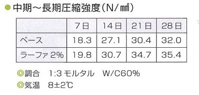 *上記の数値は、ラーファをセメント重量の2%添加した場合の値です。