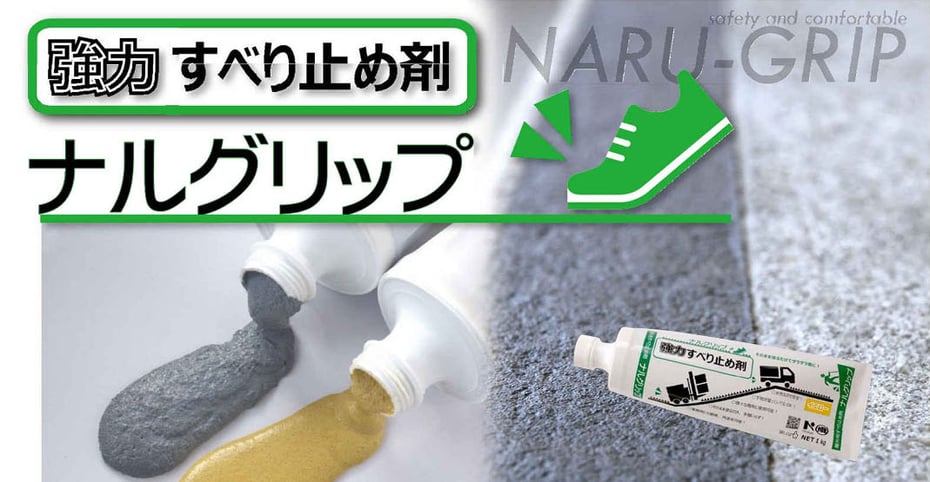 ナルグリップは、塗布表面がザラザラで摩擦が大きいため、歩行者や通行車両の多い場所では表面が黒色に汚れやすくなります。通行の多い場所での使用色はグレーがおすすめです。