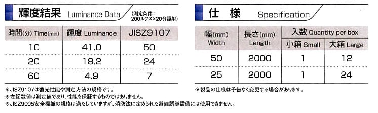 高輝度タイプの蓄光材を使用。暗部での誘導表示に最適です。
