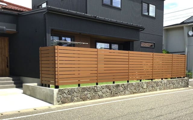 アーバンフェンスにシボ加工をプラスした、風格ある木目仕様です。