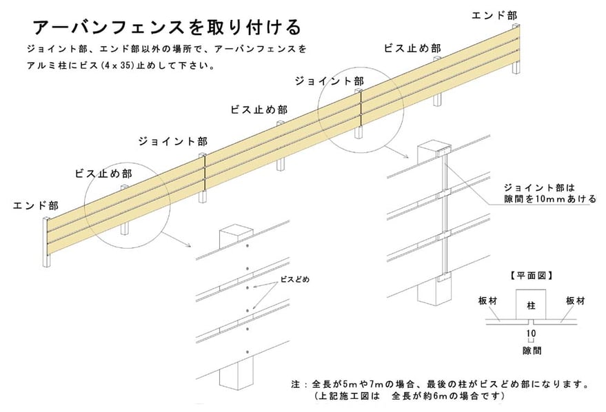 施工方法は、アーバンフェンスと全く同じです。隙間・色の組合せなども自由にお楽しみください。