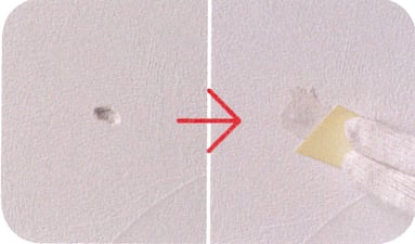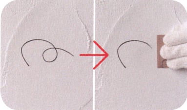 ラフに仕上がっている壁面の場合は、スポンジで軽く擦ってください。