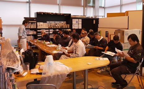 6月より始まり今回で5回目になります。テーマは「販売力・営業力を伸ばす20のヒント」というテキストに沿って行い、毎回その「ヒント」についてグループで個々の意見や実体験に元ずく体験談などを発表しあい、グループでの意見をまとめ全体発表を行います。